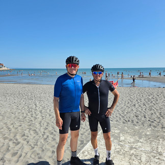 A do Grado wjeżdżamy efektowną 5-kilometrową groblą – po obu stronach mamy morze, a przed nami piękne miasteczko, które stanowi oficjalny punkt końcowy Alpe-Adria. Przemykamy szybko przez centrum i zajeżdżamy na zatłoczoną piaszczystą plażę. Ludzi jest tu mnóstwo, ale od razu czujemy, że to nie Bałtyk, ponieważ… nie ma parawanów 😉