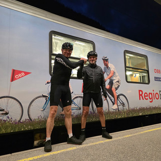 Po 109 kilometrach i naprawdę wymagającym podjeździe w końcówce, dojeżdżamy do Bockstein, gdzie kończy się droga i przesiadamy się na specjalny pociąg, który 11-kilometrowym tunelem przewozi nas do Mallnitz po południowej stronie Alp. Ponieważ do Bockstein dojechaliśmy o zmroku, jedziemy ostatnim pociągiem i jesteśmy jedynymi pasażerami tego gigantycznego (liczącego chyba 16 wagonów) składu. Ale sam pociąg robi wrażenie. Są specjalne wagony do przewozu aut i wagony rowerowe. Podróż kosztuje 12,40 euro za osobę + rower, trwa zaledwie kilkanaście minut i późnym wieczorem meldujemy się w Mallnitz, gdzie mamy nocleg.
