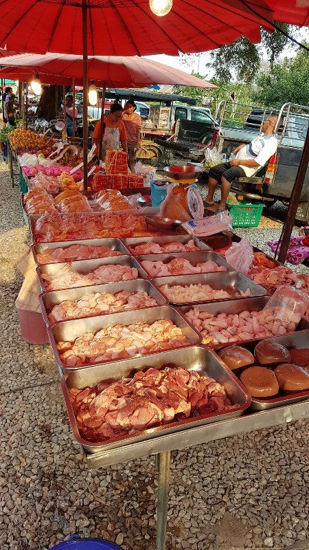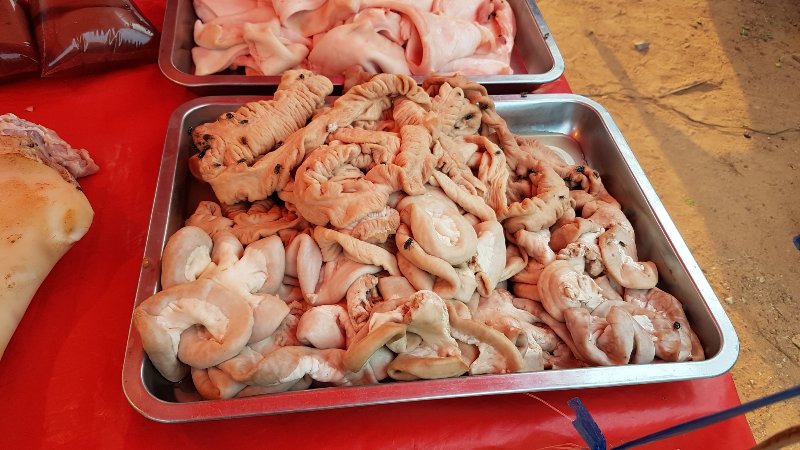 Atrakcją wieczoru okazała się jednak wizyta na lokalnym bazarze. Postanowiłem uzupełnić siły po całym dniu jazdy kupując wyłącznie to co jedzą lokalsi. I tak na pierwszy ogień poszedł szaszłyk z żab z ryżem, na dokładkę smażone robaki na pikantnie, a na deser ananas, banany i mango z ryżem i mlekiem kokosowym. To było naprawdę pyszne.