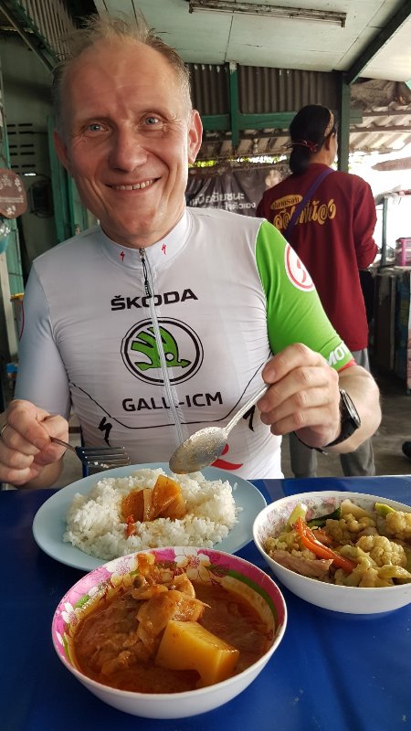 Potem wszystko się zmienia. Aut jest znacznie mniej. Krajobraz jest coraz bardziej egzotyczny. Skromne tajskie garkuchnie przy drodze zachęcają do postoju. Oczywiście muszę się skusić. Panie nie znają ani słowa po angielsku, ale świetnie dogadujemy się na migi :) Jestem tu prawdziwą atrakcją: pani z obsługi dolewa wody, inni biesiadnicy dosiadają się do mojego stolika.