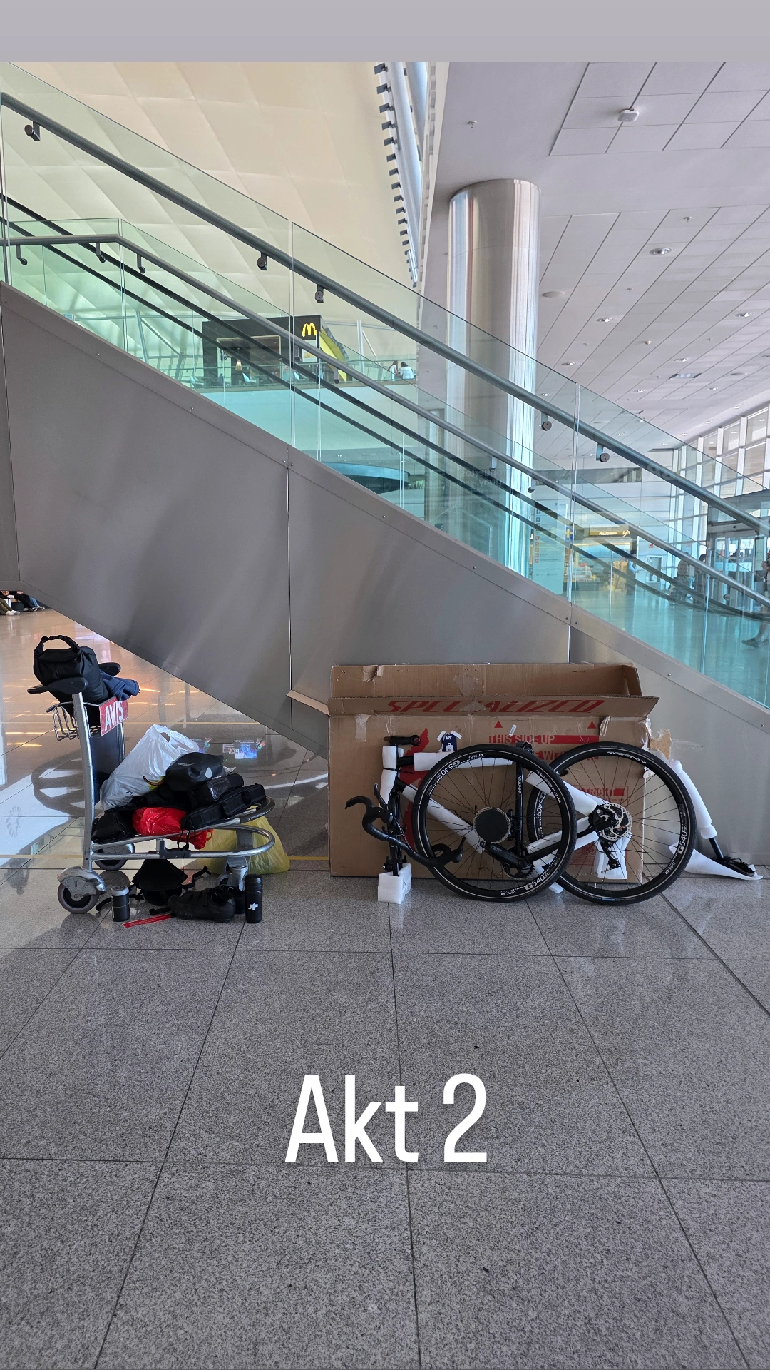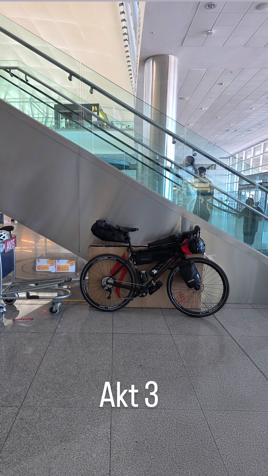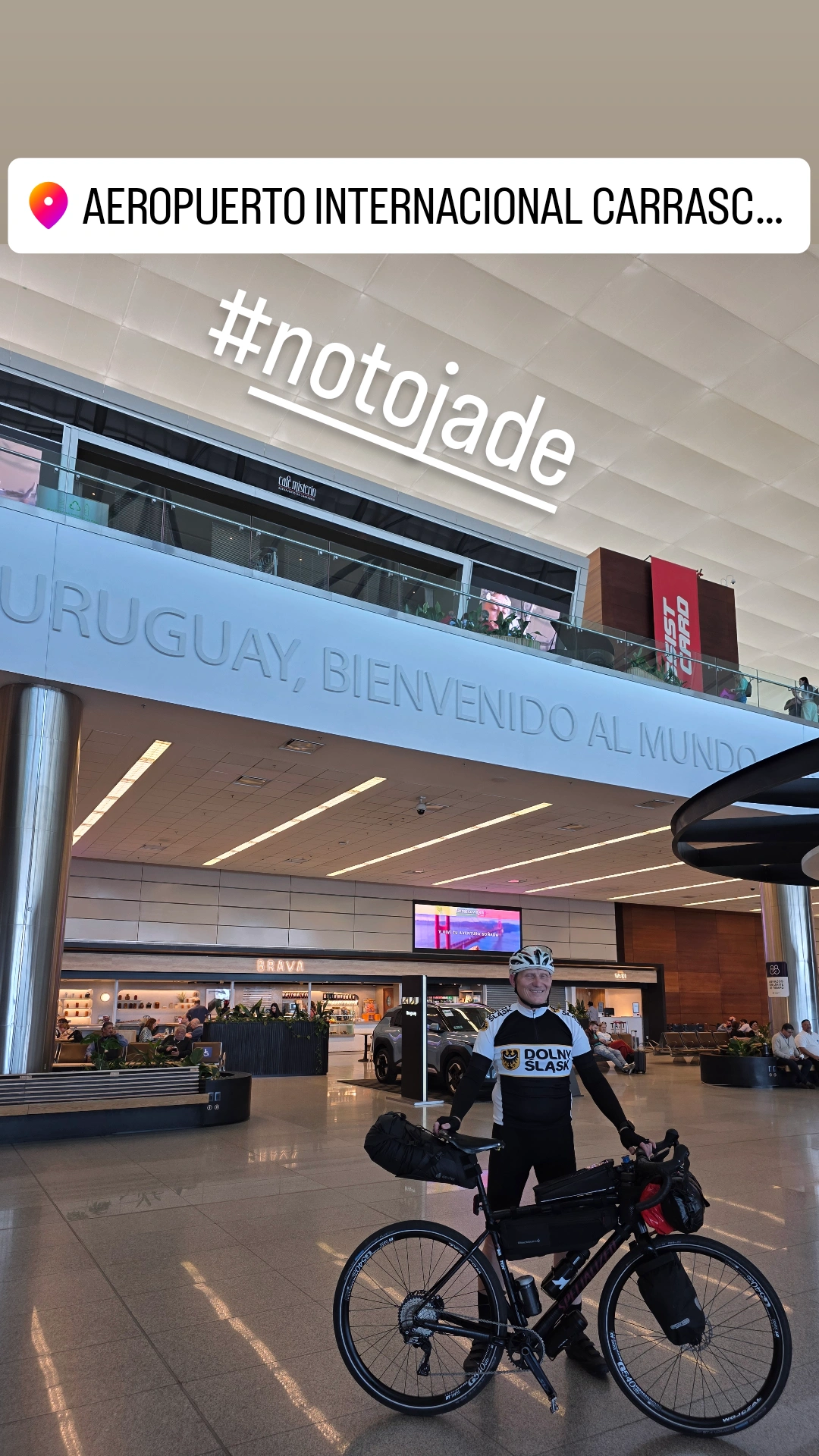 Najtrudniejszą częścią moich rowerowych wypraw są długie loty. Ten ostatni do Urugwaju, chociaż trwał 13 godzin, wspominam jednak dobrze, bo prawie cały czas spałem. 😌 A niedzielny poranek w Montevideo przebiegał naprawdę sprawnie. Odprawa celna i paszportowa trwała zaledwie kilka minut. Rower dotarł w idealnym stanie. Potem szybki montaż mojego Speca w terminalu przylotów i jestem gotowy do drogi!